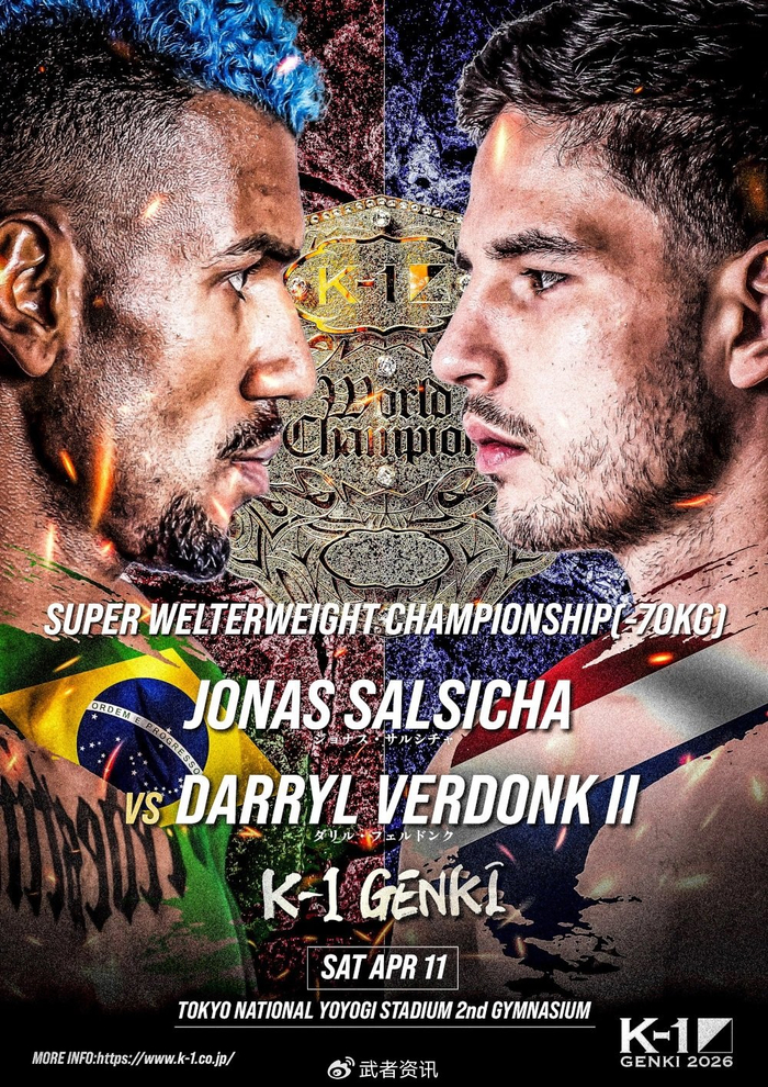 本次比赛有三场冠军金腰带头衔战:K-1重量级冠军争霸赛,现任冠军阿里尔·马查多(62-14 ,44 KO)对阵挑战者克劳迪奥·伊斯特拉特(61-25-3, 34 KO, 1 N)。空缺的K-1超次中量级(-70kg)冠军争霸赛,乔纳斯·萨尔西查(27-4, 10 KO)对阵达利尔·维尔东克(18-8, 11 KO)。空缺的K-1中量级(-75KG)冠军争霸赛,邓圭·席尔瓦(48-6, 26 KO)对阵阿尔弗赛努·卡马拉(35-5, 20 KO)。